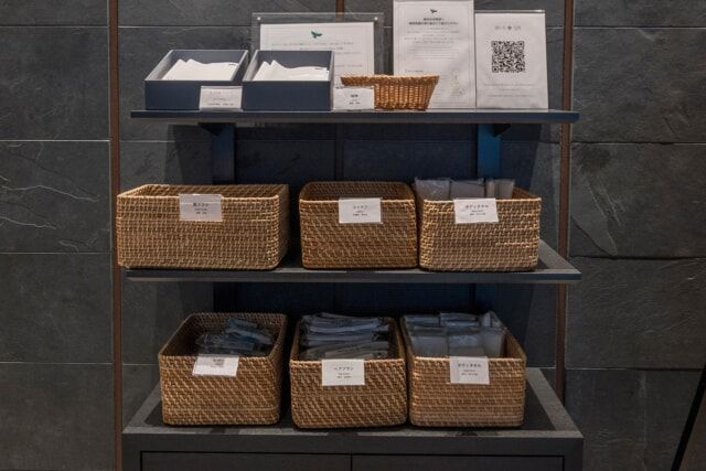 アメニティが用意された脱衣場。タオルは客室から持参します。