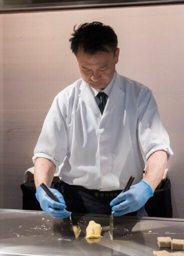 ランチやディナーでは和牛を使った高級鉄板焼きが食べられる「SHARI」。オムレツと名物の胡麻豆腐はオーダーごとに鉄板で焼き上げ、出来立てをいただけます。手さばきも見事。つい見入ってしまいます。