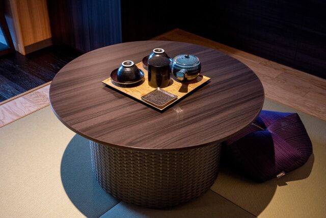 ▲ちゃぶ台を思わせるテーブルに趣を感じます