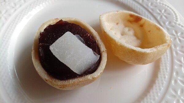 ちょうどよいサイズで、中にはなめらかなあんと求肥が入っていて、皮がサックサクで美味しい。