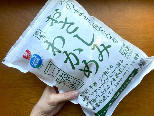 主役級の食材になってくれるので、ごはんの上にのせたり、炒め物にプラスしたりと、いろいろな使い方ができる、おさしみわかめ。1袋500gという大容量ですが、冷凍保存のためストックしやすいのもうれしいポイントです。