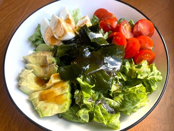 サラダにもう少し具材をプラスしたいというときにも、おさしみわかめはおすすめ。