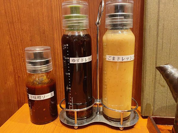 キャベツのドレッシングは「ごま」と「ゆず」の2種類があるのもポイント高し、です。ふわっふわのキャベツによく合います!