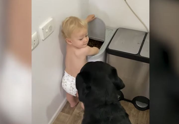 3. 「ママには内緒だよ?」勝手に愛犬を餌付けする赤ちゃん。