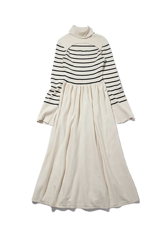 自分のベースを横に広げ、繋がりを強めてくれるボーダー。取り憑かれたようになんとなく着るのではなく、異素材のフレアスリーブなどで鮮度高く取り入れると、そのパワーがさらに強く。