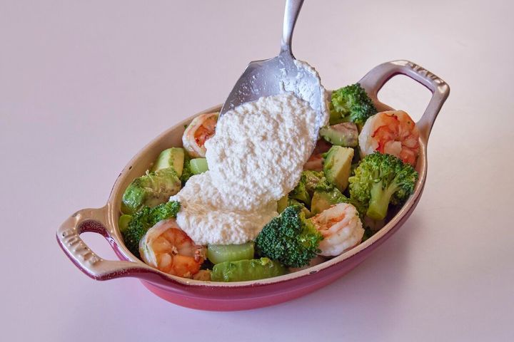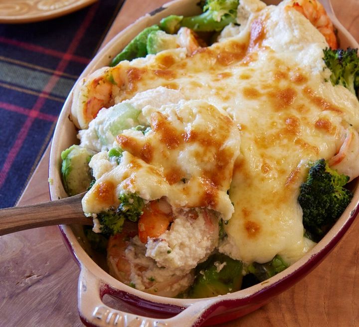 3. 混ぜるだけの簡単ソースで!『ブロッコリーとえびの豆腐ソースグラタン』のレシピ