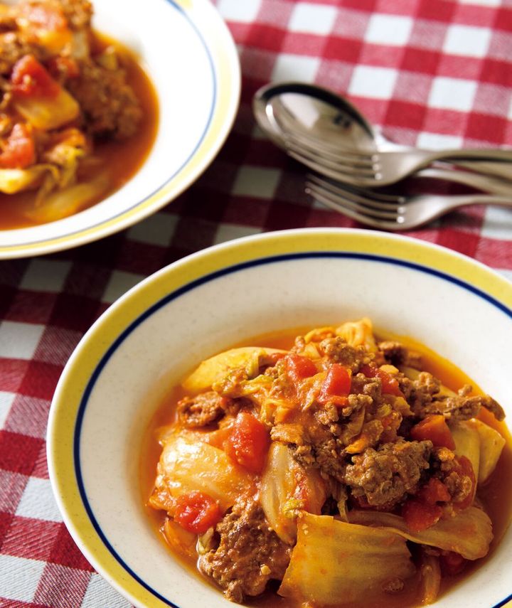 パックから直接フライパンに入れて楽ちん!『ひき肉と白菜のトマトみそ煮』のレシピ【うまみ満点】
