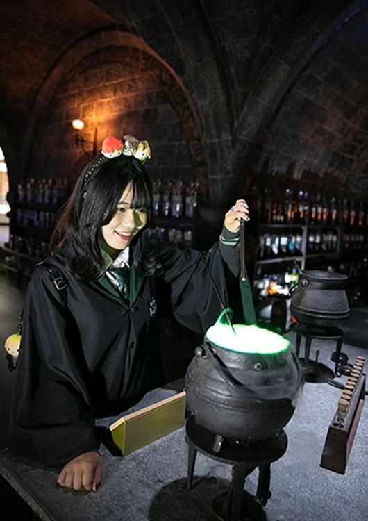 ドーム型の薄暗い教室の中には、薬剤がズラリ。うまく調合できたらあなたも立派なホグワーツ生!?生徒気分で写真を撮ってみて♡