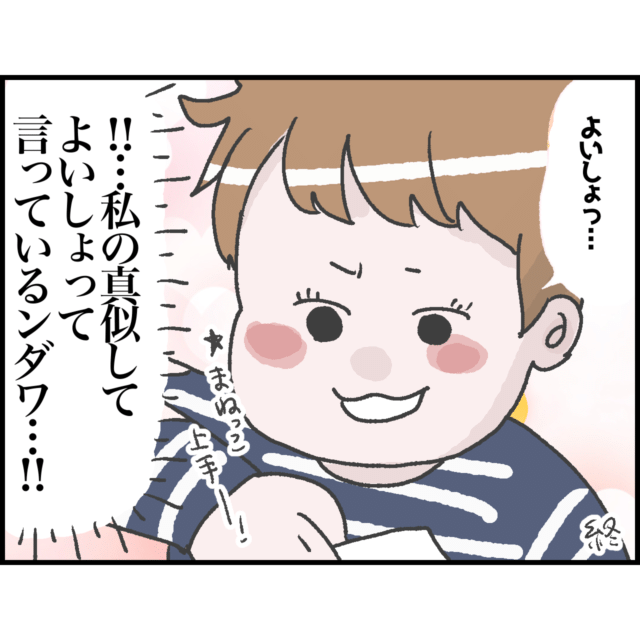 「!!・・・私の真似してよいしょって言っているンダワ・・・!!」