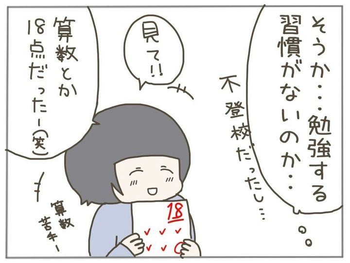 これまで勉強する習慣がなかった姪っ子。成績順位は最下位から数えた方が早く、叔母はおどろいた様子ですね。不登校の期間もあったからか、小学校の復習テストさえも苦戦しているようでした。
