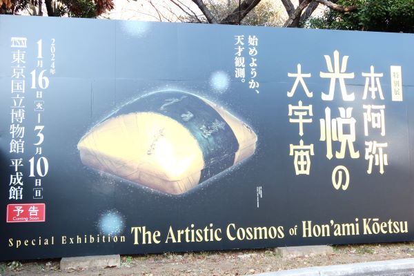 〇特別展「本阿弥光悦の大宇宙」 Special Exhibition: The Artistic Cosmos of Honʼami Kōetsu 会期:2024年1月16日(火)~3月10日(日)※会期中、一部作品の展示替えを行います。 会場:東京国立博物館 平成館 休館日:月曜日、2月13日(火) ※ただし、2月12日(月・休)は開館 観覧料:一般 2,100円、大学生 1,300円、高校生 900円 ※中学生以下、障がい者とその介護者1名は無料。入館の際に学生証、障がい者手帳等をご提示ください。 ※本展は事前予約不要です。混雑時は入場をお待ちいただく可能性がございます。 ※最新の券売情報の詳細は展覧会公式サイトをご確認ください。