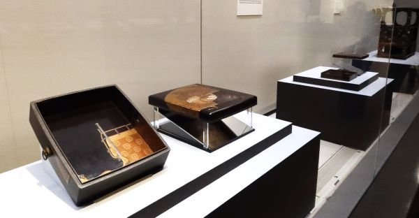 会場入り口から宇宙を貫く超新星爆発なみのインパクト、本阿弥光悦作、国宝《舟橋蒔絵硯箱》が輝いてお出迎えです。