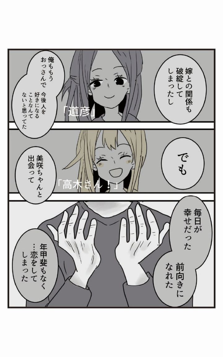 親子に近いほど年が離れている、歳の差カップル。世の中によくいる夫婦と少し違っていることで、家族から結婚を反対されたり、周囲から変に注目されたりすることがあるようです。年の差のある恋愛中で幸せを感じている方の中でも、周りの反応が気になるという方はいるかもしれませんね。この漫画でも、主人公・美咲と、ひょんなきっかけで出会ったおじさん・高木が、お互いに惹かれることに戸惑うシーンが描かれます。