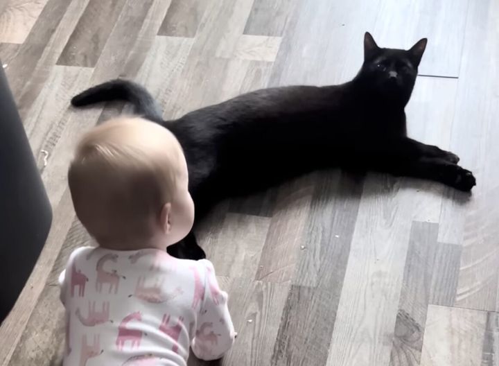 3. 赤ちゃんと黒猫ちゃんのヒソヒソ話?可愛らしいやりとり♪