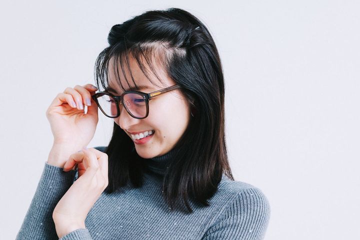 グレービジューリブタートルニット 8,980円/épine デニムパンツ 14,850円/CALNAMUR めがね 20,900円/ダブルラバーズ(スクリーンショット) イヤリング 6,930円/アビステ ブラウンパンプス 9,500円/チャールズ&キース(チャールズ&キース ジャパン)