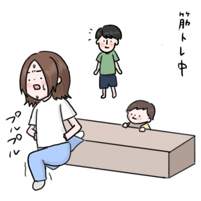 3. え?大丈夫?母のかなりハードな筋トレをマネっ子する息子|ねむりひつじの子育て絵日記