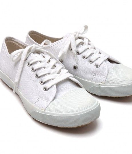 白スニーカー 16,500円/MHL. スタイリストたちにも人気のムーンスターに、MHL(マーガレット ハウエル)がスペシャルオーダーしたコットン素材のスニーカー。