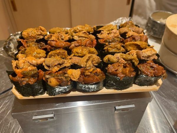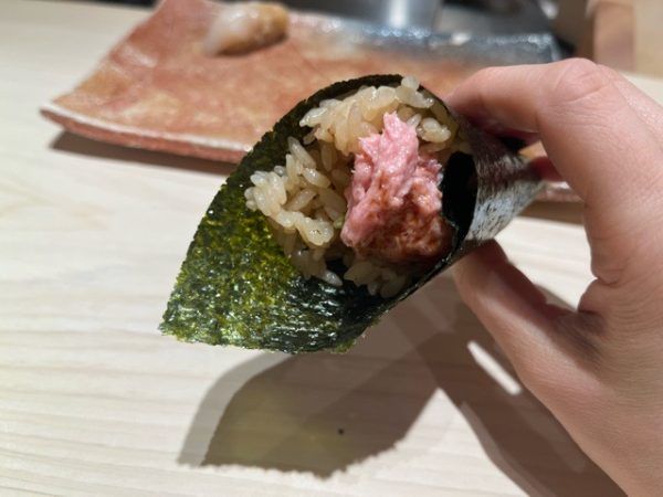 食べ放題のシステムは、簡単。 最初にウニをはじめとするメニューが一通り出てくるので、それを食べた後、順番に追加で頼みたいものを握っていただきます。 一貫あたりのごはんが小さく食べやすいのも嬉しいのですが、何より驚くのがその美味しさ!