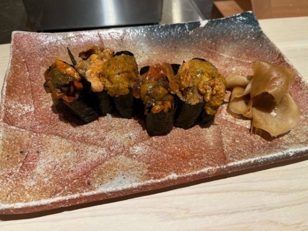 お寿司を楽しむのはもちろんですが、アレにウニをのっけて…なんて要望もきいてくださるのも嬉しいところ。同じネタでも味付けを変えてくださったりもするので色々な味を楽しめました。