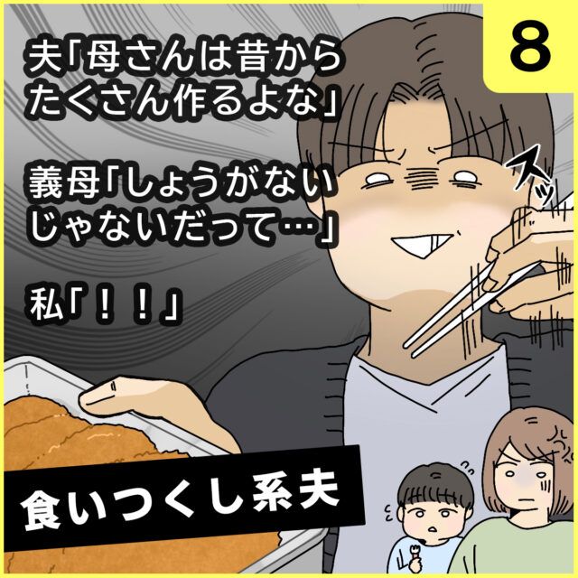[8]食べたいだけ食べる夫の原因判明?大量おかずを一度に作る義母。「食いつくし系」夫|ママ広場マンガ