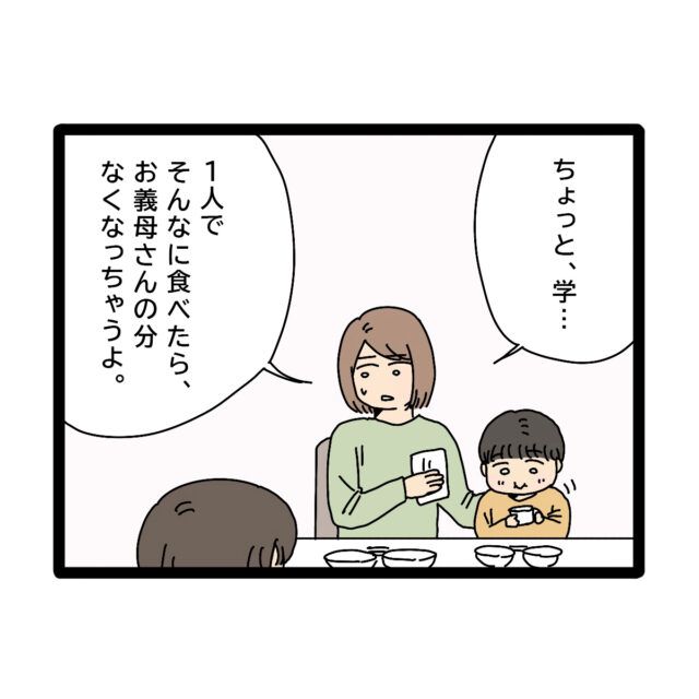 「ちょっと、学・・1人でそんなに食べたら、お義母さんの分なくなっちゃうよ」