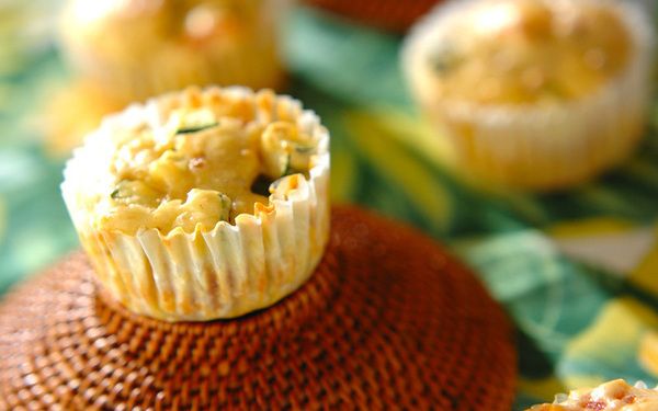 ズッキーニとドライトマト、アンチョビやベーコンなど具だくさんのマフィンは、主食にぴったり。同じ夏野菜のトウモロコシを加えても良いですね。水分の出にくい野菜でアレンジすると美味しいですよ。