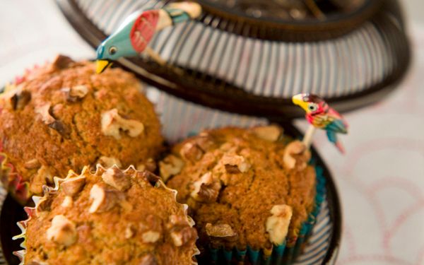 カボチャのピューレをたっぷり混ぜ込んだマフィンは、食べ応え満点。バターやハチミツのコク、シナモンの香りがカボチャに好相性です。カボチャがたくさん手に入ったときにピューレにして冷凍保存すれば、いつでもマフィンに活用できて便利ですよ。