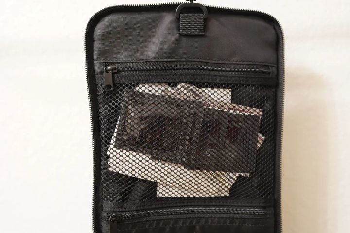 「スペースが限られたバスルームに置かれたポーチが邪魔だな…」と思ったのは、以前コンパクトなホテルに泊まった際のこと。その直後に発見したのが、吊るして使える洗面用具ケース。バスルーム周りで使うアイテムはまとめて収納。タオルハンガーなどに引っ掛けて使えば、洗面所の限られたスペースを広々と有効活用することができます。