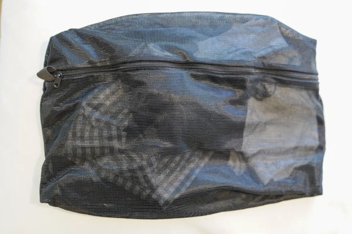 折りたたんでコンパクトに収納できるメッシュ生地の衣装ケース。旅行先で出た洗い物は、この袋にどんどん詰めていきます。以前のスーパーのビニール袋や大きめのジップロックに比べ、こちらに変えてからはスーツケースの中がすっきり。