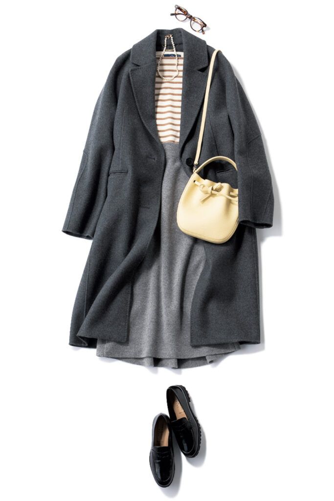 3. 【グレーのロングコート】まだ寒いシーズンは頼れる!大人におすすめの最新コーデ4選