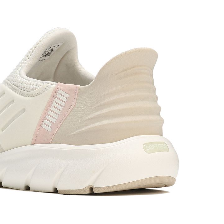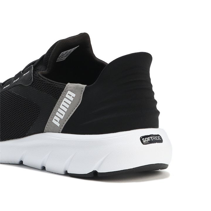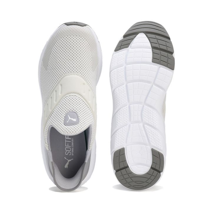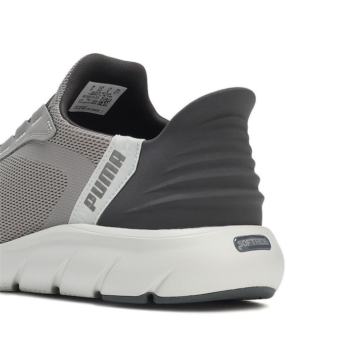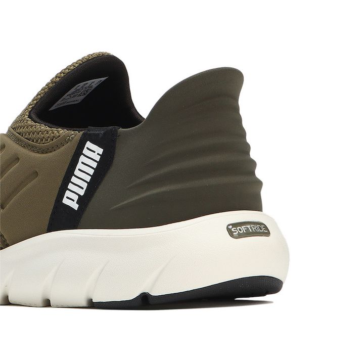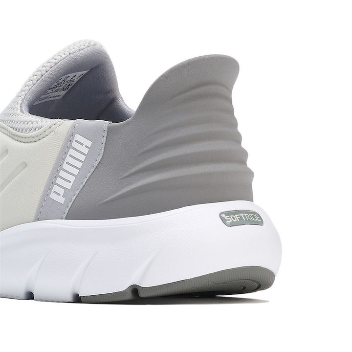 PUMA SOFTRIDE EASE IN は、プーマ独自のクッショニングフォーム「SOFTFOAM®(ソフトフォーム)」を使用し“楽ふわっ”の履き心地を提供している大人気シリーズ「SOFTRIDE(ソフトライド)」の新モデル。シュータン一体型のスリッポン構造の履き口は、新たに開発したヒールパーツを搭載することで、立ったままでも簡単に足入れが可能になっています。さらに、メッシュ素材のアッパーに SOFTRIDE ミッドソールを組み合わせることで、軽量で通気性がよく、1 日中快適な履き心地を維持します。着用時の横幅が気になる方にも対応できるように、通常モデルよりも広くなっており、横幅を気にせず履くことができます。ウィメンズモデルも同時に発売となり、ウォーキングや長時間の外出時にもおすすめの1足です。