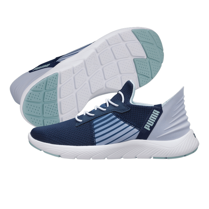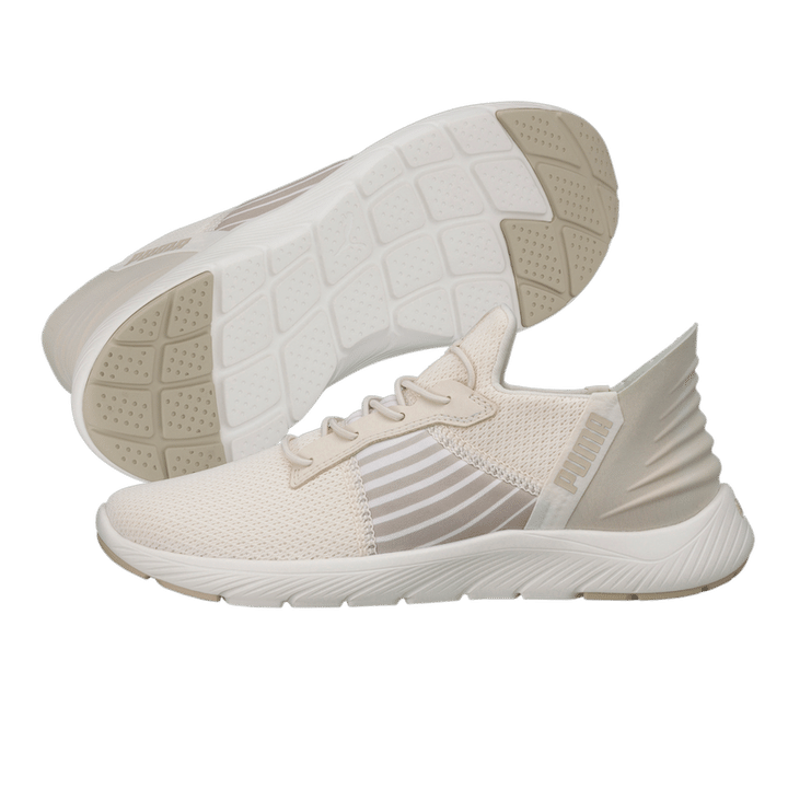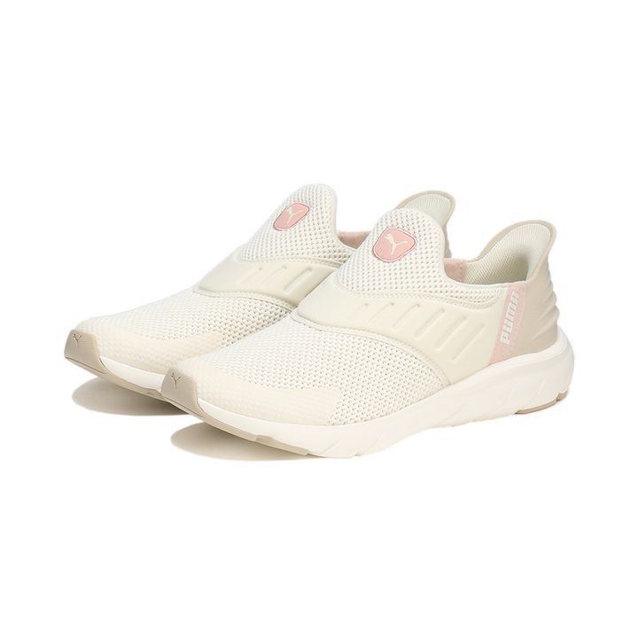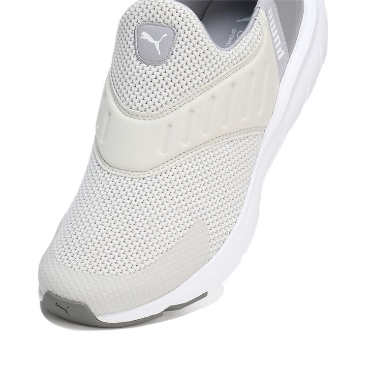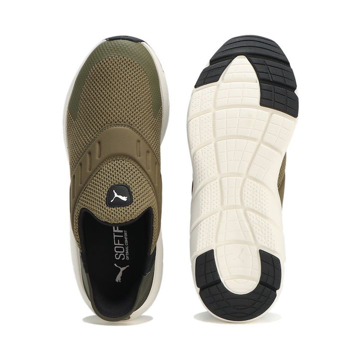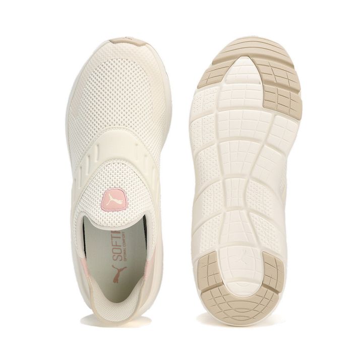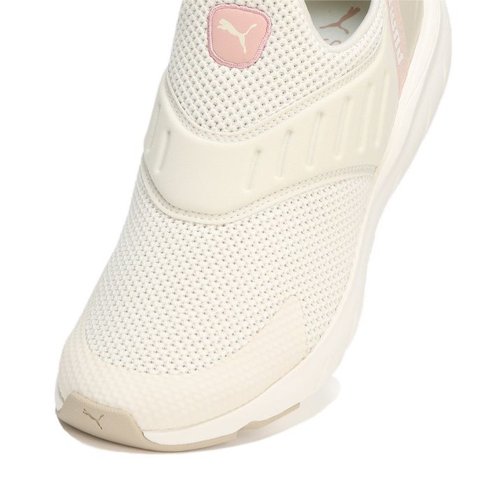 PUMA SOFTRIDE EASE IN は、プーマ独自のクッショニングフォーム「SOFTFOAM®(ソフトフォーム)」を使用し“楽ふわっ”の履き心地を提供している大人気シリーズ「SOFTRIDE(ソフトライド)」の新モデル。シュータン一体型のスリッポン構造の履き口は、新たに開発したヒールパーツを搭載することで、立ったままでも簡単に足入れが可能になっています。さらに、メッシュ素材のアッパーに SOFTRIDE ミッドソールを組み合わせることで、軽量で通気性がよく、1 日中快適な履き心地を維持します。着用時の横幅が気になる方にも対応できるように、通常モデルよりも広くなっており、横幅を気にせず履くことができます。ウィメンズモデルも同時に発売となり、ウォーキングや長時間の外出時にもおすすめの1足です。