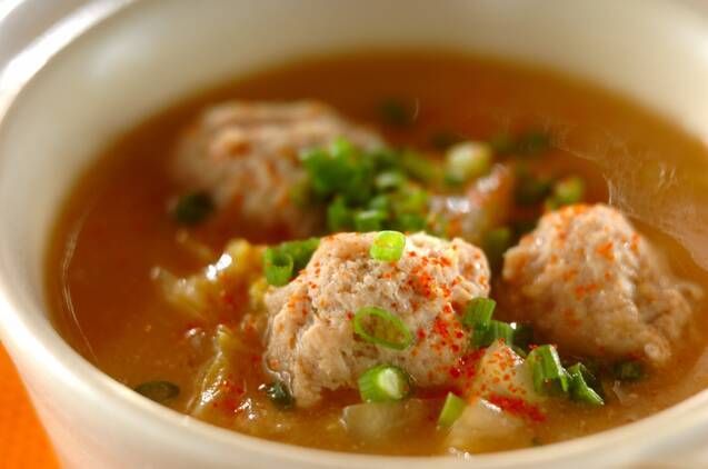 ・鶏団子と白菜のみそ汁