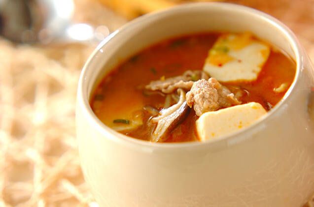 発酵食品のみそに同じく発酵食品のキムチを合わせた美腸レシピ。豚肉やモヤシ、シイタケなど入れる具材のアレンジは未知数です。ごはんを入れて雑炊風にしても良いですね。