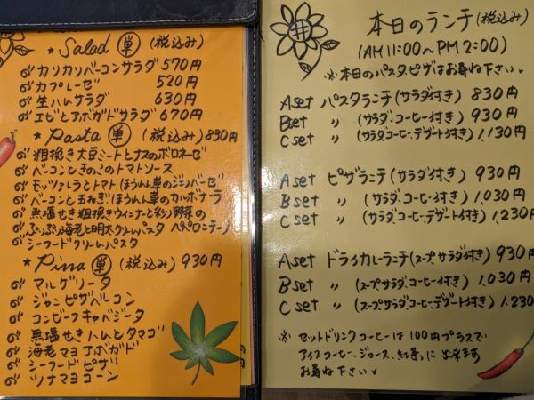 お隣の方のパスタもおいしそうでしたし、メニューも豊富なので何度も足を運びたくなりました。是非こだわり材料のおいしいパスタやピザを食べに「cafe&kitchenひまわり」へ行ってみてくださいね。
