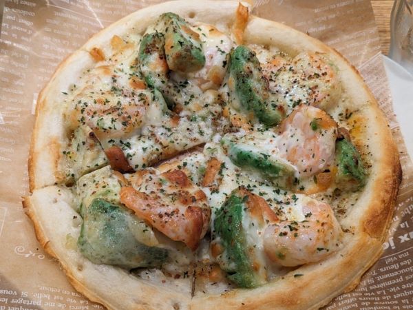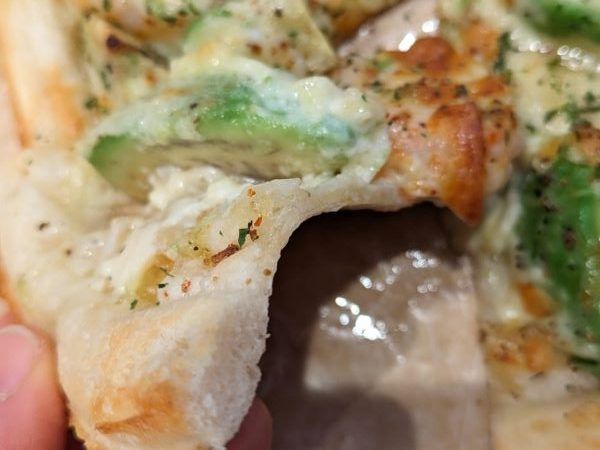 具が大きすぎます~!!海老の大きさにもビックリ。アボカドの厚みには感嘆の声を上げそうなりました(笑)。生地に具を包み込むようにして、豪快にパクリ。海老のプリプリ感が半端ないです。今日のランチにして良かった~!因みに、アボカドは1枚で1/2個分使っているそうです。コクのあるマヨネーズとの相性も抜群でした。 生地はモチモチのナポリ風♪具とのバランスも最高です。