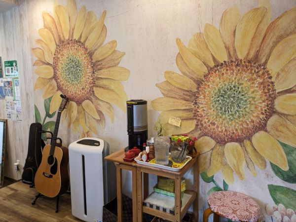 お店の名前にもあるように、壁に描かれたひまわりの絵が、気持ちをパッと明るくさせてくれます。