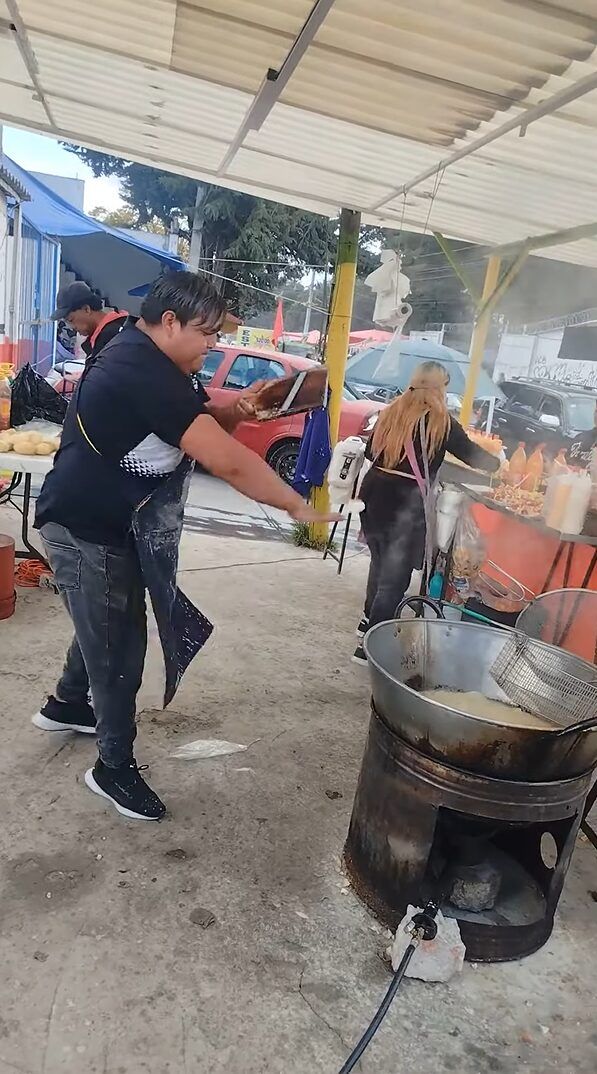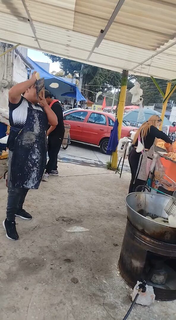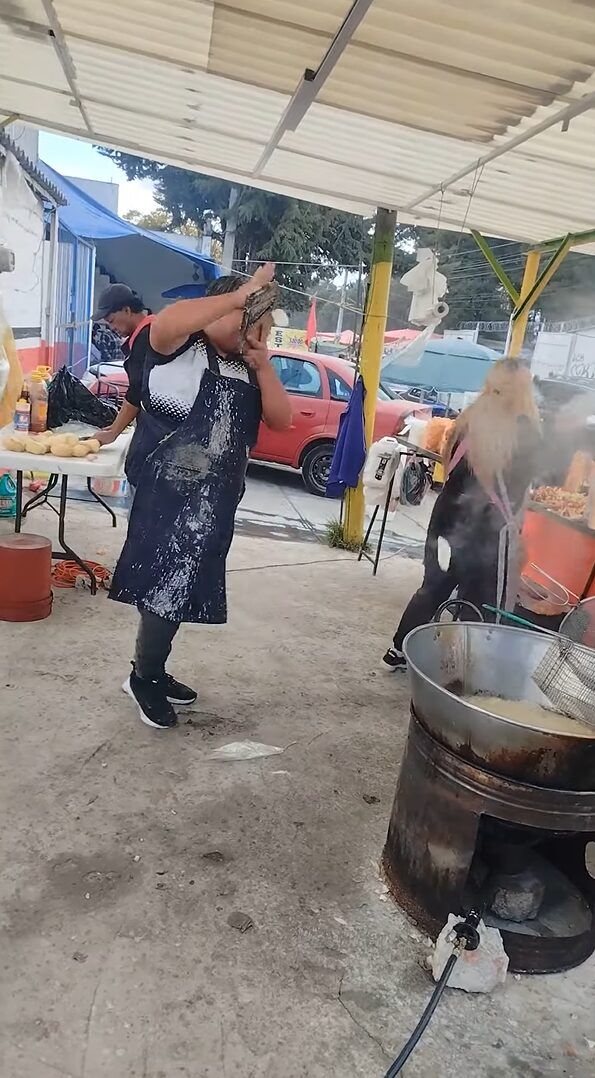 動画が撮影されたのは、メキシコ。 屋台で料理人が調理する姿を捉えた映像です。