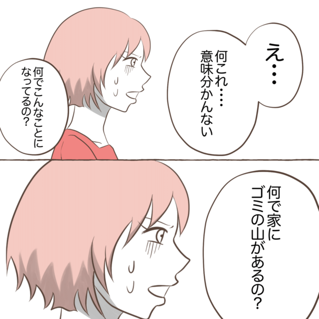 段ボール、ゴミ袋、ペットボトル、謎の置物などが山積みになっていました。
