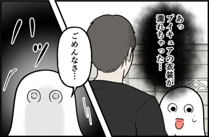 大切なプイキュア変身セットが汚され、ついに本性をあらわにした不審者。冷酷な目で水たまりに突き飛ばされ、ほや助さんは恐怖でいっぱいに。