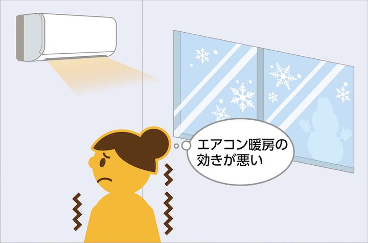 室外機周りの対策を実施しないと、エアコン暖房の効きが悪くなる等のトラブルが発生することがあります。トラブルが起こる理由として、例えば以下が考えられます。