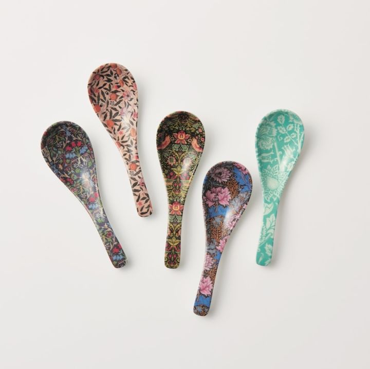 いちご豆花に添えたレンゲスプーンは5本セットのなかの、「いちご泥棒」と「柘榴あるいは果実」柄。落ち着いた色味と上品な柄ゆきで、豆花を引き立ててくれますよね。レンゲスプーンは軽くて、程よい大きさで使い勝手抜群。ぜひ、レシピを参考にスイーツを作っていただき、付録のレンゲスプーンを添えてお使いください。