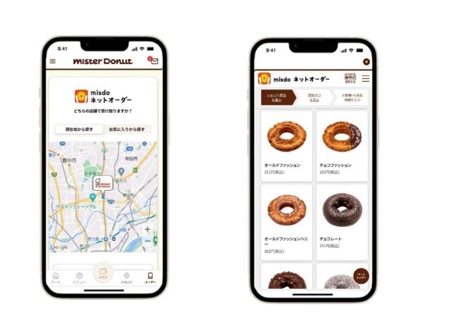 アプリからネットオーダー利用も可能。現在地近くのショップ表示機能やキーワードによるショップ検索機能により、近くのショップを簡単に探せます。また「お気に入り店舗」を登録することができ、ミスドネットオーダーをよりスムーズに利用できます。