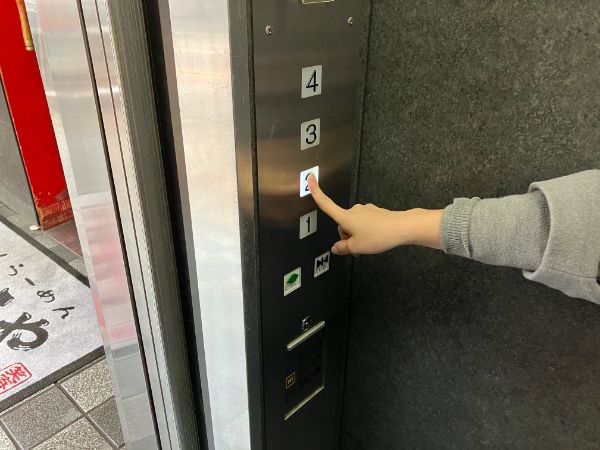 虎穴に入らずんば虎子を得ず! 迷わずエレベータに乗り込み、われわれは2階へのボタンを押すのであった。