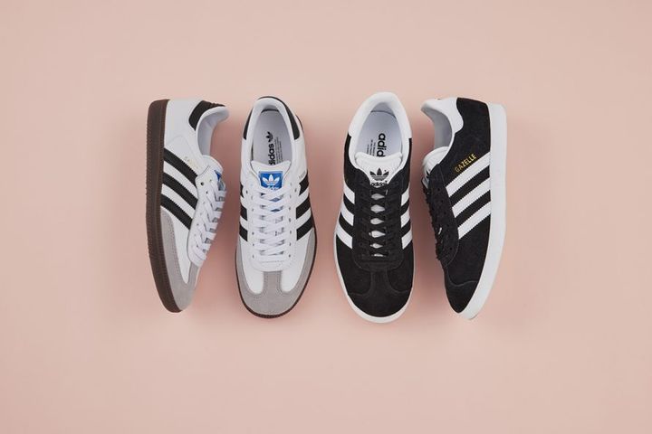 (左から)サンバ OG フットウェアホワイト/コアブラック/クラウドホワイト、ガゼル コアブラック/ホワイト/ゴールドメタリック 各¥15,400/ともにアディダス オリジナルス