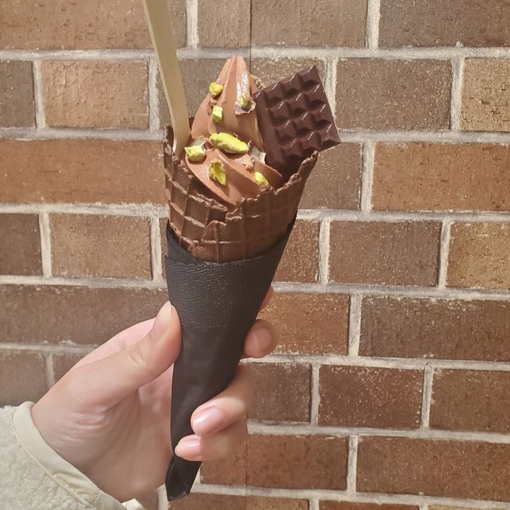 粗目に砕かれたピスタチオがふんだんに散りばめられており、ピスタチオの香りと味わいでソフトクリームがより引き立つ味わい。