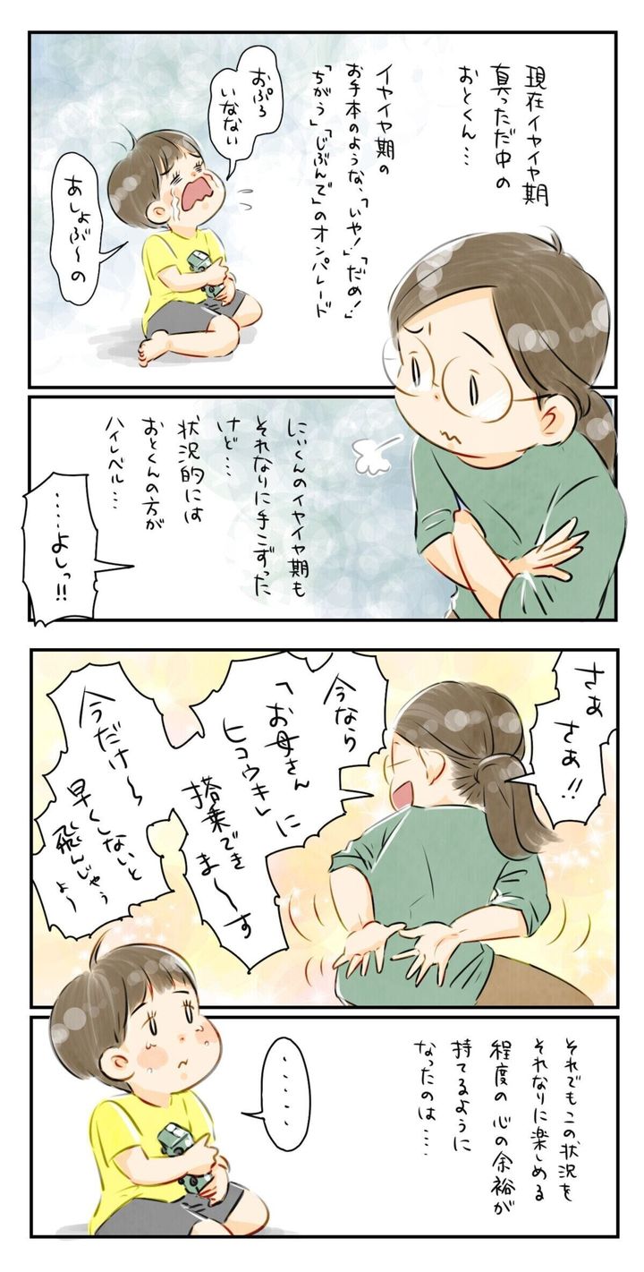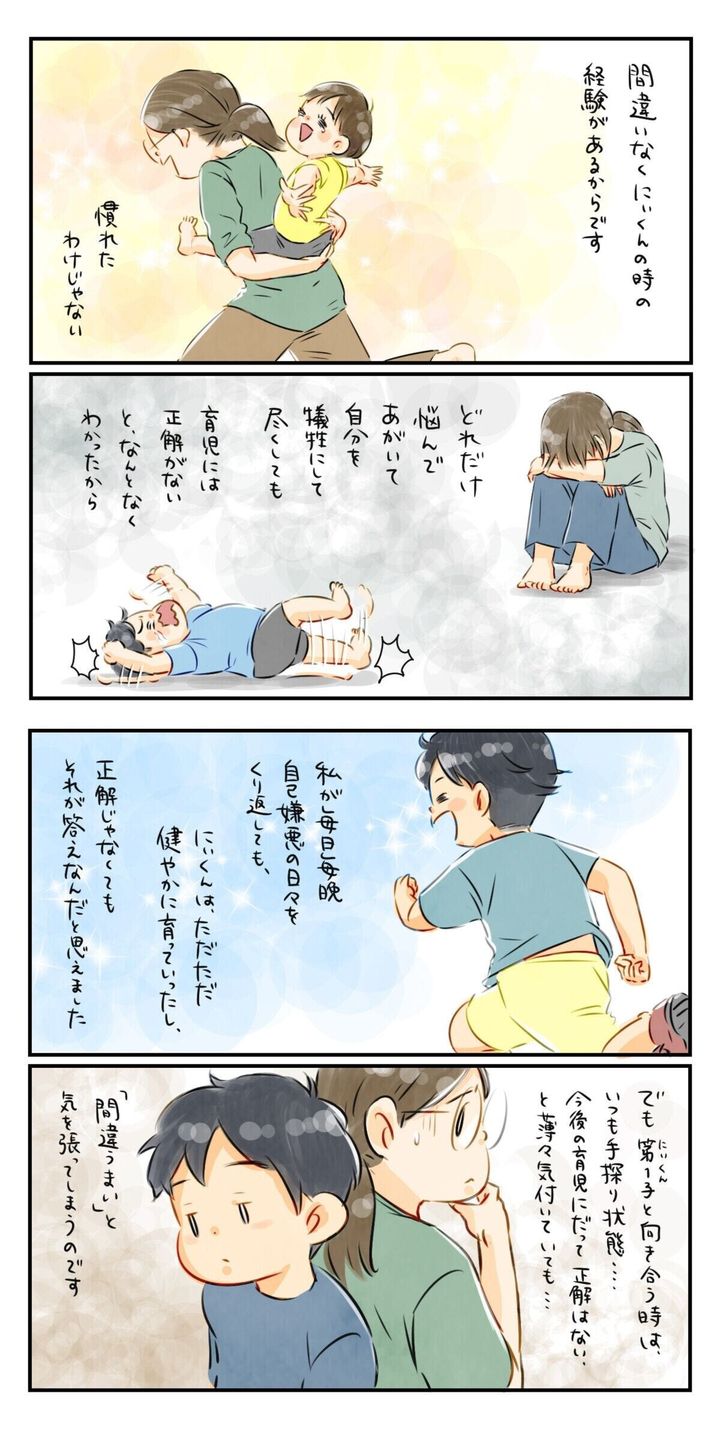 しかし、第一子はすべてが手探り。これでいいのだろうか…と不安になるのは当たり前ですよね。にいくんとの今までがあるから、苦には感じない、第二子のイヤイヤ期。それは、星田つまみさんが、にいくんと向き合ってきた証拠です。