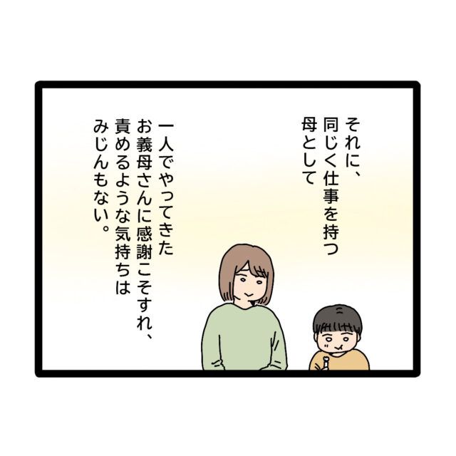 それに、同じく仕事を持つ母として、1人でやってきたお義母さんに感謝こそすれ、責めるような気持ちはみじんもない。