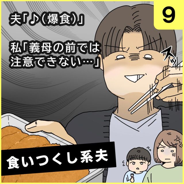 [9]義母の前では言えない・・好きなものを好きなだけ食べる夫。「食いつくし系」夫|ママ広場マンガ