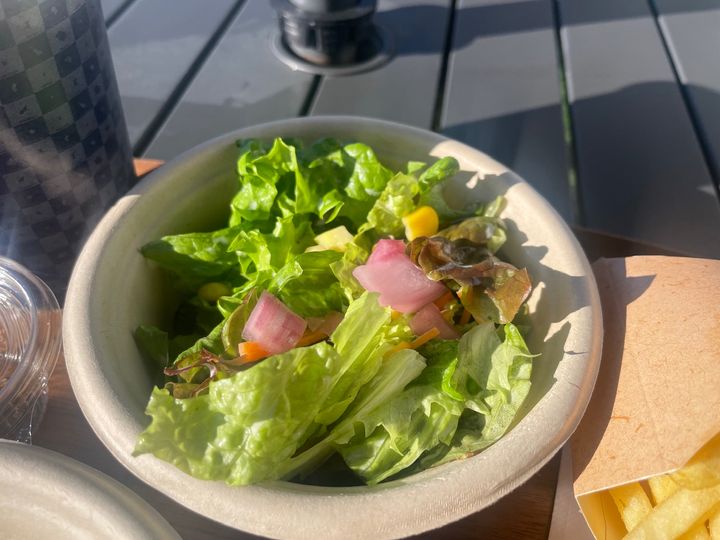 シャキシャキ葉っぱのサラダ。ドレッシングも美味しかったです。